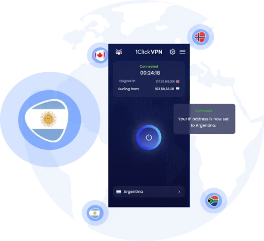 Click on Argentina, connect, and start browsing freely. Unblock any website and enjoy secure, private access with an Argentina IP address.