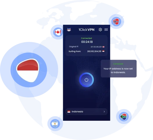 Click on Indonesia, connect, and start browsing freely. Unblock any website and enjoy secure, private access with an Indonesia IP address.